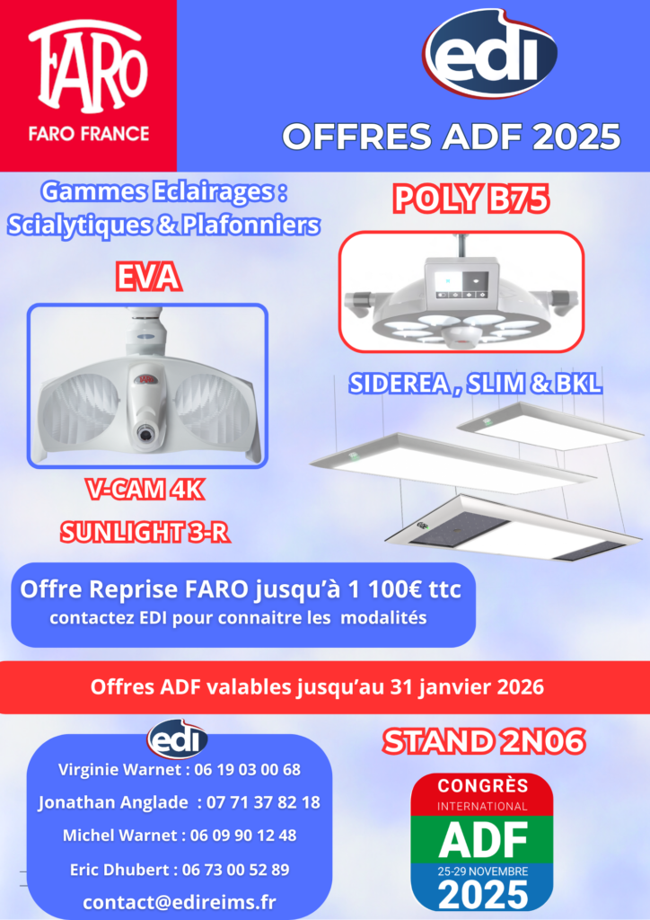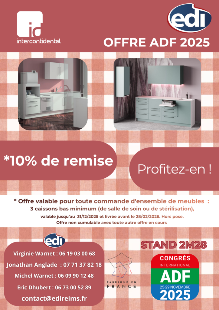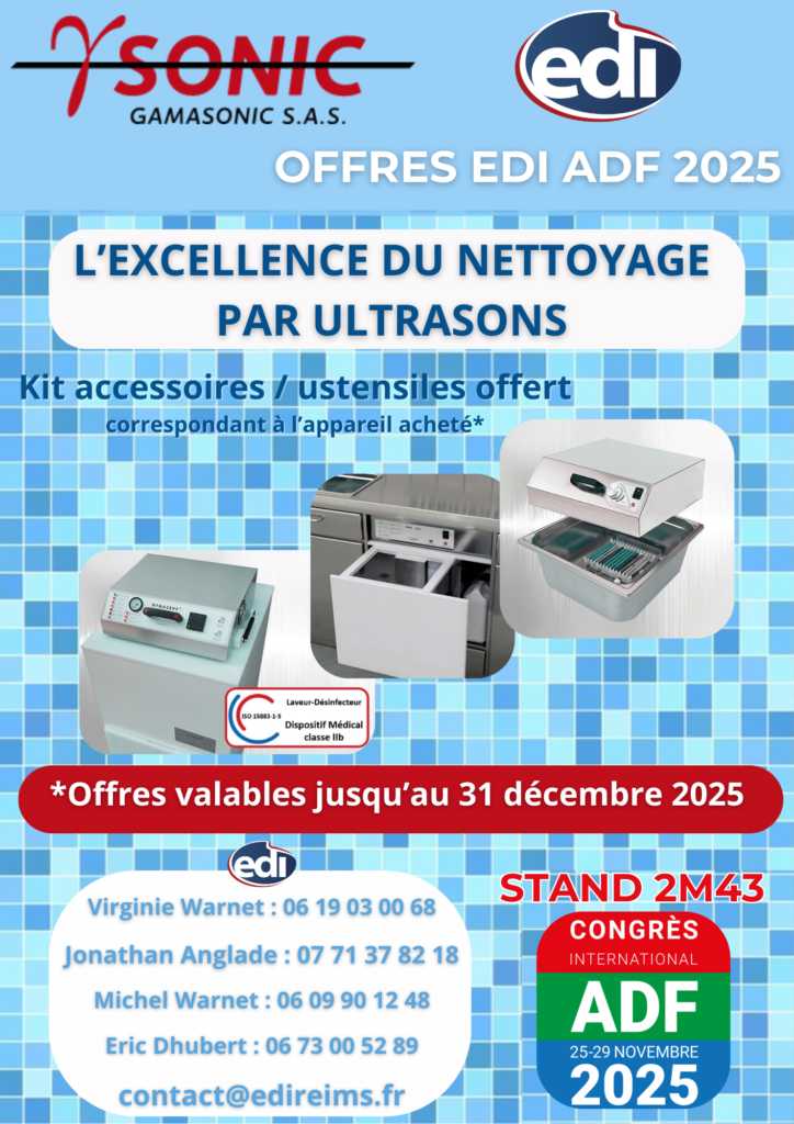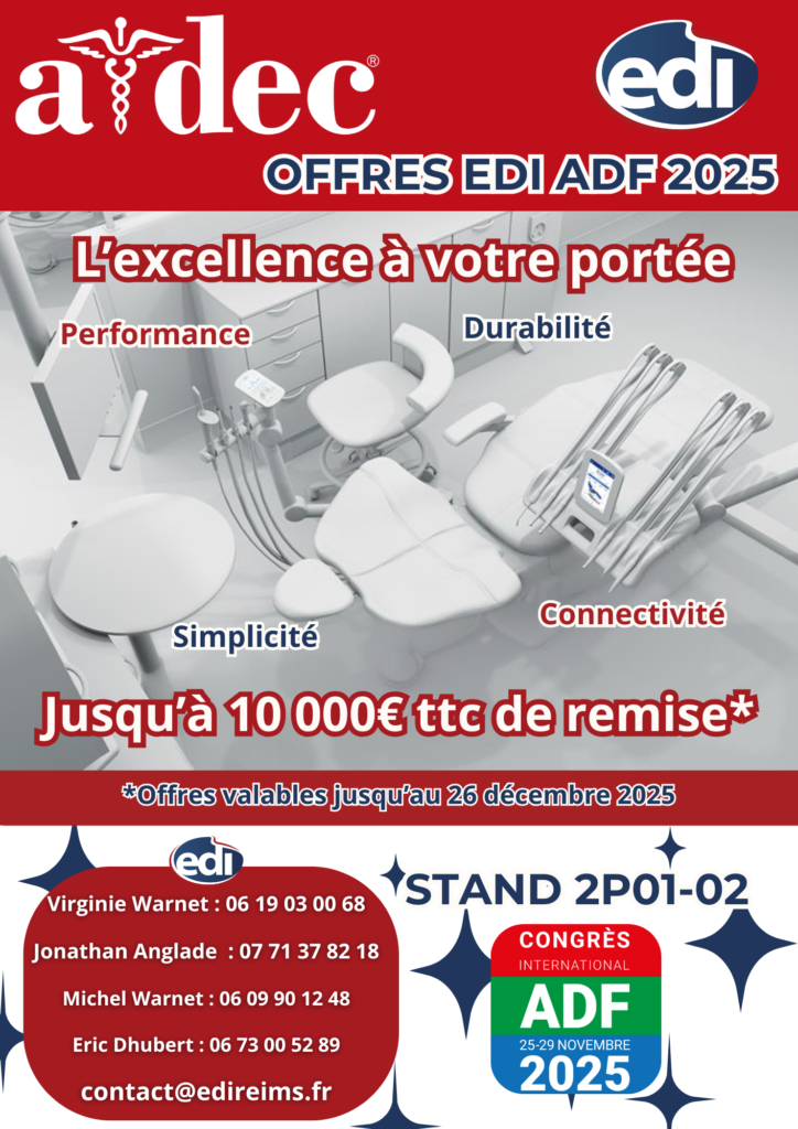21 juillet 2020 Mina WARNET Offres Offres EDI ADF 2025 Offres EDI – NSK ADF 2025 Nouvelles Offres NSK Offre Scanner Intra-Oral Nouvel Autoclave NSK : iClave 24 Offres Acteon Hiver 2025 Offres ADF EDI 2024 Nouveauté : Chirurgie et Omni-pratique